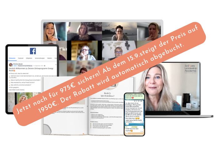 Ich empfehle Dir unbedingt vorher die Teilnahme am Energy Boost, es sei denn Du bist schon Expertin Deiner selbst, stressresistent und selbstbewusst.
